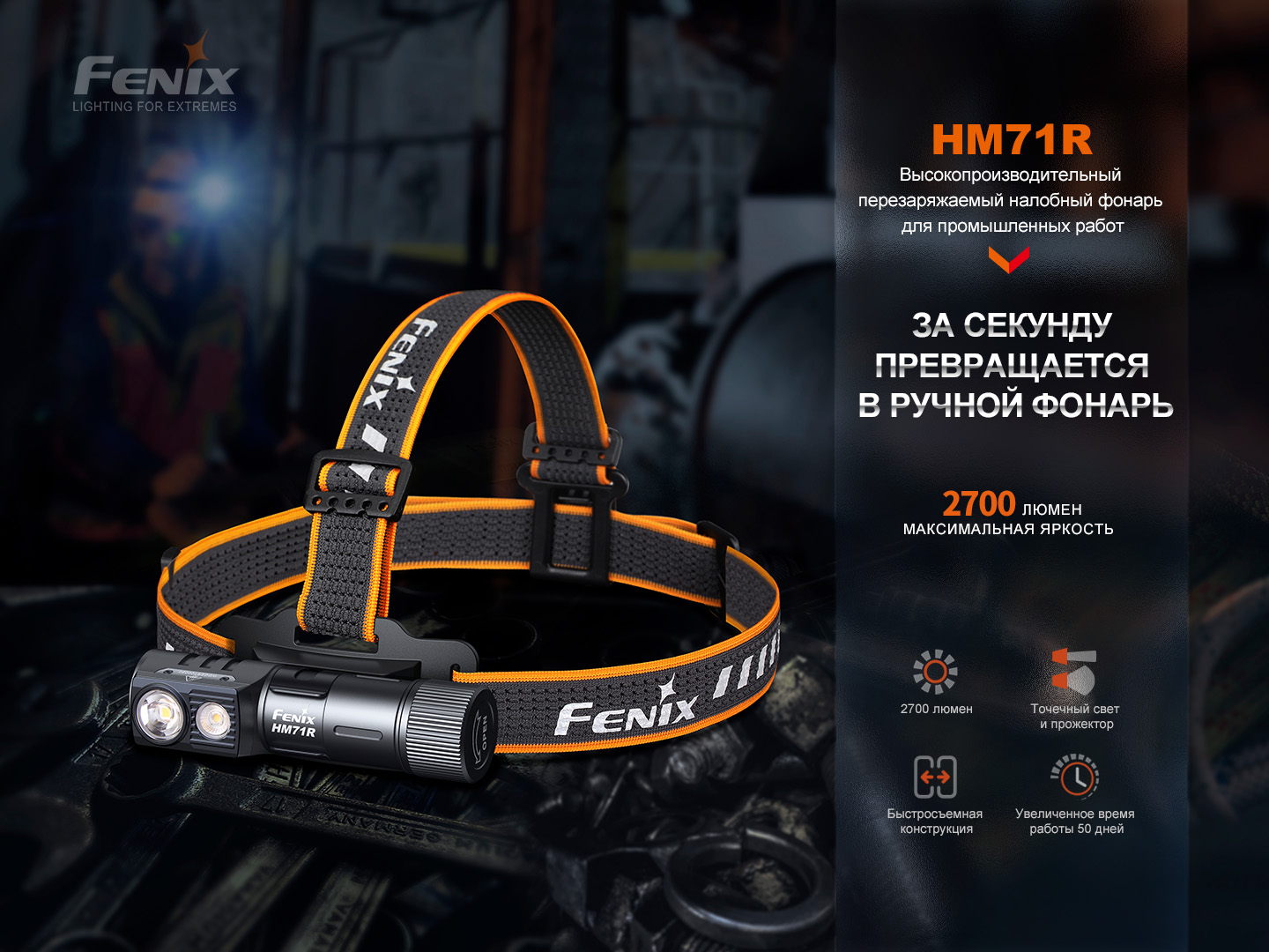 Перезаряжаемый фонарь Fenix HM71R является многофункциональным осветительным устройством для промышленного использования. Благодаря обширнму набору из восьми режимов модель также пригодится во время загородного отдыха и длительных пеших путешествий, в которых требуется автономный и портативный источник света.