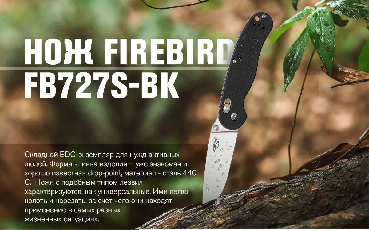 Бренд Firebird известен многим ценителям компактных и практичных ножй. Эти стильные и доступные изделия быстро увлекли покупателей. Китайский производитель Ganzo знает, чем обаять искушенных пользователей. Виртуозно воплощая свои идеи, ножеманам мастера предлагают доступные, надежные, аккуратные и продуманные инструменты. Один из таких –экземпляр Firebird F727S.
